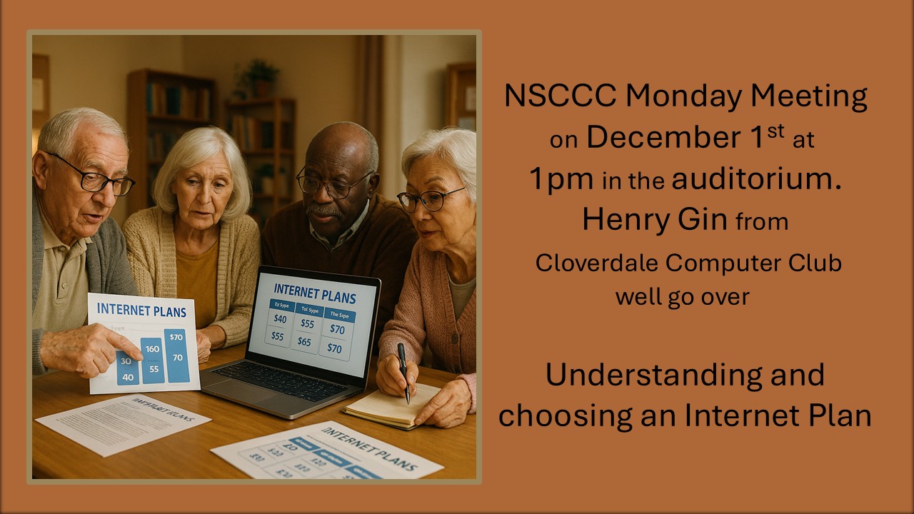 Nov. 10th Henry Gin (Cloverdale) Understanding & choosing an Internet Plan