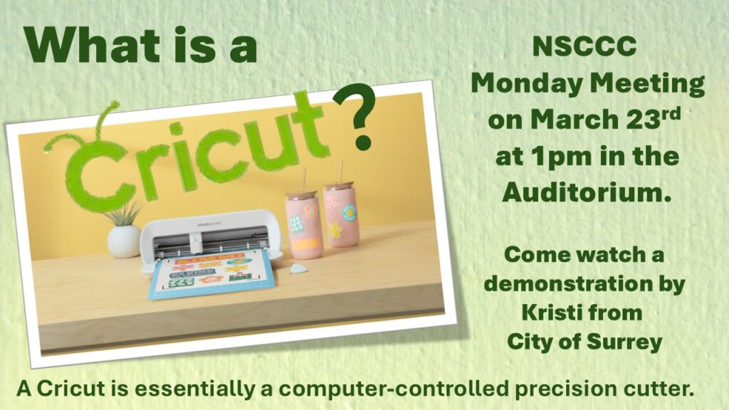 Kristi Schwandt, Intergenerational Programmer for our area, explained why we are now expected to register for all programs run by the City of Surrey, and then showed us, with the help of a slide show, how to register for city programs, including drop-in programs such as our club meetings.